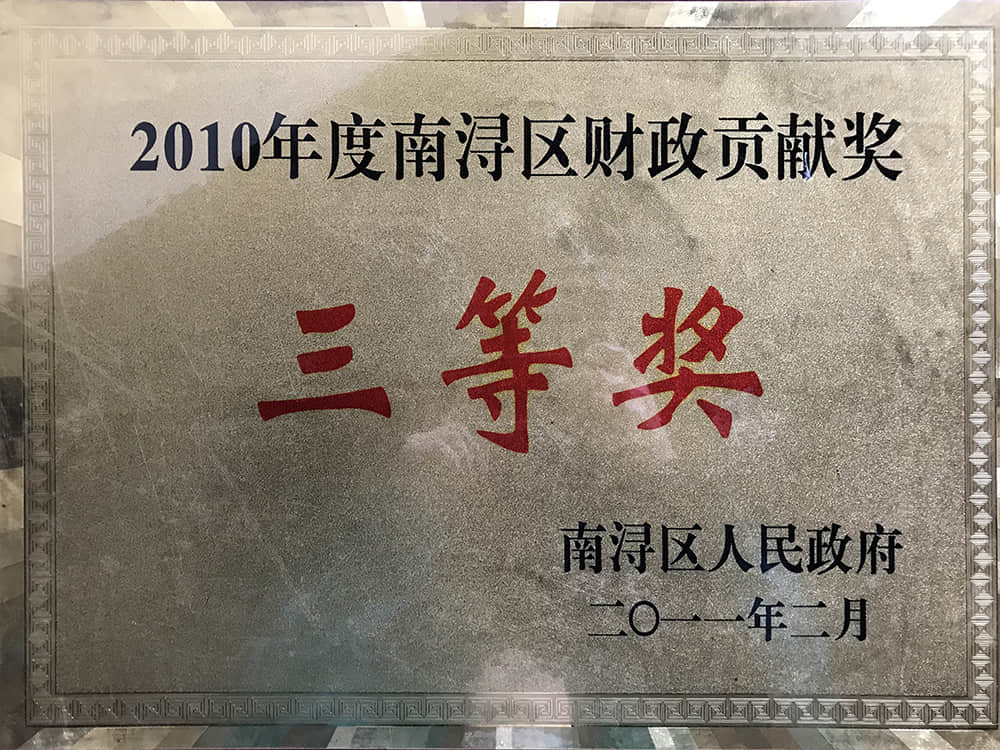 2010年度南潯區(qū)財(cái)政貢獻(xiàn)獎(jiǎng)三等獎(jiǎng)