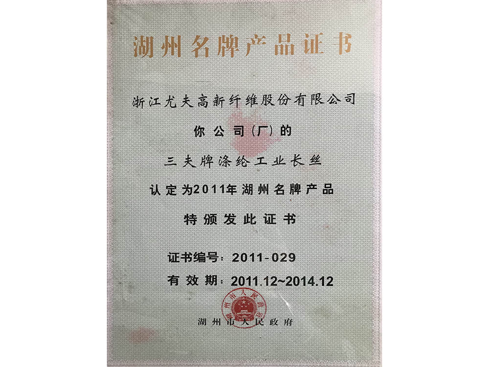 湖州名牌產(chǎn)品證書2011